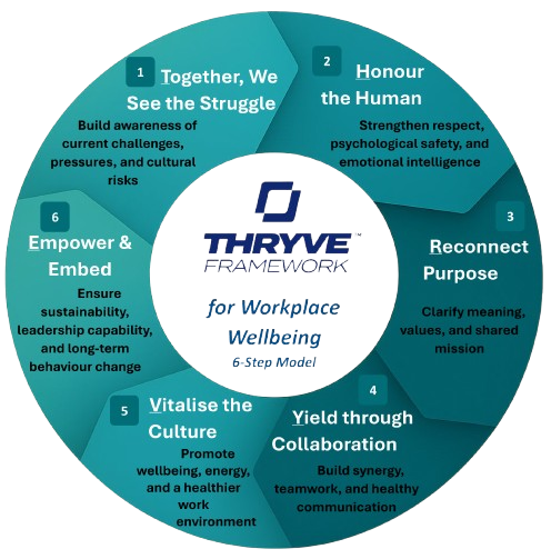 While our work aligns strongly with Australia’s strengthened expectations around psychosocial safety and employer responsibility, the values behind THRYVE are universal — relevant to organisations across cultures, industries, and regions.